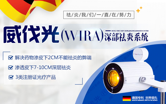 威伐光因其所采用的wIRA专利使得它可以精准地过滤并消减其中引起热效应副作用的波段的光能,从而穿透皮下约7—10cm进行深部炎症治疗。